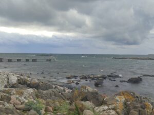Ich musste sehr hoch am Wind segeln und wurde durch die sehr hohe Dünung immer wieder abgebremst. Für die eigentliche nur 8sm von Torekov zum Kap, haben wir gute 5 Stunden gebraucht. Einige Wellen haben uns alle 4 immer mal wieder gewaschen 😁