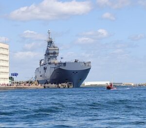 Ich schaue mir dann noch mal den Hubschrauberträger der Franzosen an, der jetzt nicht mehr an die Russen verkauft wird. Ein riesen Ding!