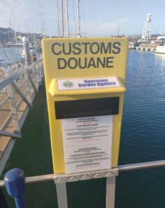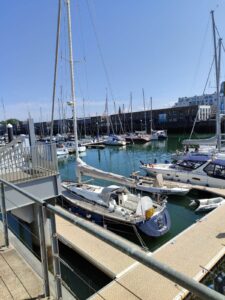In Guernsey werden wir von einer hübschen jungen Hafenmeisterin im Boot empfangen und zum Warte Anleger begleitet. Wir bekommen ein Formular zur Einreise und können bei ausreichend Hochwasser, und für 57 £, in das Innere Becken einfahren.