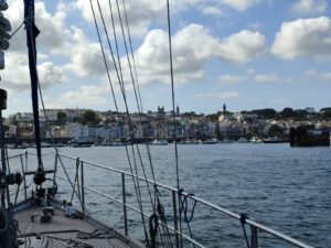 Die 45 sm nach Guernsey haben wir anfangs noch die Maschine mitlaufen, aber zum Mittag haben wir schönstes Segelwetter.
