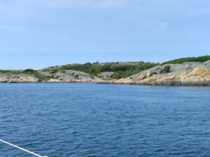Heute ist leider überhaupt kein Wind. Wir motoren weiter Richtung Göteborg. Vor Göteborg entdecken wir eine kleine Insel mit Hafen und entscheiden kurzfristig hier zu bleiben.