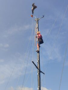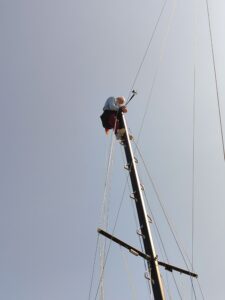 Heute morgen nimmt sich Conny allen Mut zusammen und steigt in den Mast um mein Chaos zu richten 😘 Meine Heldin des Tages!