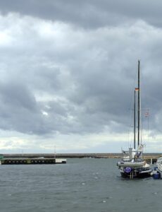 Das ist die zweite Nacht hinter der Kaimauer in der wir wenig schlafen. Der Wind heult und rüttelt mit bis zu 30kn in den Masten. Der Schwell kommt in den Hafen und die „Rooster“ ruckt in den doppelten Festmacher Leinen.