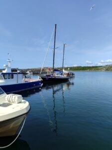 Heute ist leider überhaupt kein Wind. Wir motoren weiter Richtung Göteborg. Vor Göteborg entdecken wir eine kleine Insel mit Hafen und entscheiden kurzfristig hier zu bleiben.